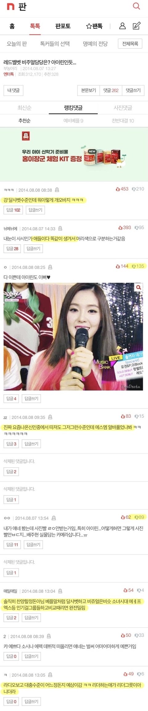 대형 여돌들 까이는 수법 다 똑같음 1. 별로 안예쁜데 왤케 찬양질이야 알바풀었냐 2. 그냥 중소 수준인데? 중소 여돌이 더 예쁜듯 3. 선배그룹에 비해 비주얼이 너무 딸리네 ;; 윤아같은 비주얼 없어? 크리스탈같은 비주얼 없어? 아이린같은 비주얼 없어? (먼 훗날 데뷔할 5세대 여돌에게는) 카리나같은 비주얼 없어? 4. 이쁜건 알겠는데… 그렇게 찬양할 정도는 아니지 않아? 솔직히 대형빨 받아서 찬양받는듯… ㅇㅈㄹ 레파토리 다 똑같쥬? 소시 에펙 레벨 에스파 다 겪은 루트 ㅋㅋㅋㅋㅋ 이래서 대형 신인여돌들 외모 내려치기는 걍 무시해야되는거임 아무리 후려쳐봤자 결국 대형에서 데뷔한데에는 다 이유가 있는거고 어차피 판녀들은 누가 데뷔하든 그냥 다 내려침 ㅇㅇ