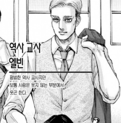 목소리 겁나 좋아서 오히려 밥 먹고 수업 들을 때는 잠 올 것 같음. 근데 애들 다 엘빈 선생님 얼굴 보려고 애써 잠 안 자려고 노력하고, 엘빈 쌤은 그런 애들 귀여워할 것 같음. 첫사랑 이야기 해주라고 조르면 넥타이 고쳐 매고는 "선생님이 중학생이었을 때.." 까지만 말하고 초롱초롱한 애들 눈 쓱 둘러본 다음에 피식 웃고는 "진도부터 나가자." 해서 탄식 여기저기서 쏟아질 듯.