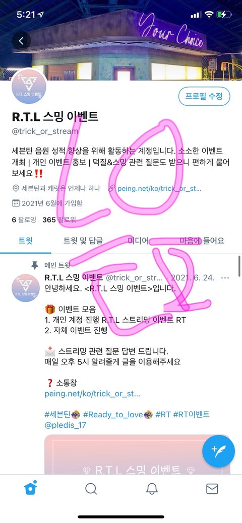 오늘 방송을 끝으로 ready to love 활동이 모두 종료되어 R.T.L 스밍 이벤트 계정도 내일 올라오기로 예정된 이벤트를 끝으로 잠깐 공식적인 계정 활동을 정지하려고 합니다.