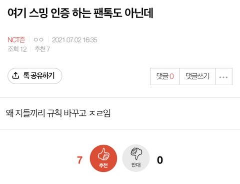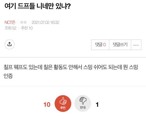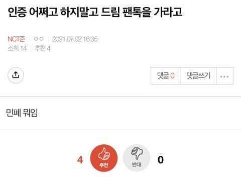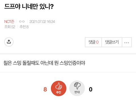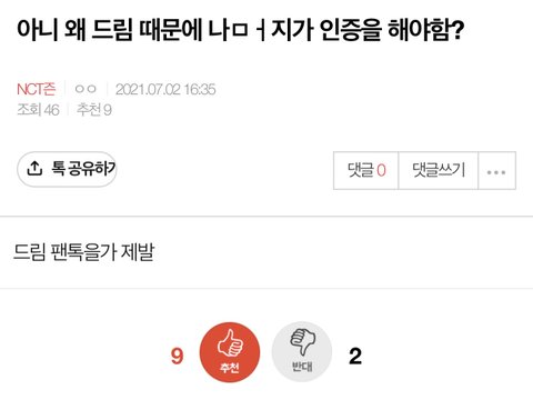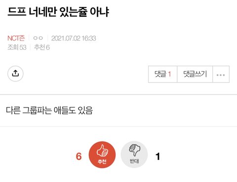 맨날 드림한테 성적 처발려서 정병온 ‘그 그룹 퀴’들이 드프들만 따로 팬톡파서 나가라고 해서 드프 팬톡 분리됨ㅇㅇ NCT드림 팬톡으로 와