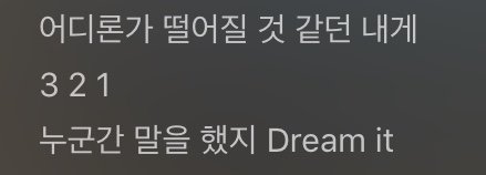 개힘들었거든 그때 마이페이지 듣는데 완전 내 상황같고 ㅋㅋ 가사 보고 이건 입덕하라는 신호인거 같아서 입덕했음 아직도 내가 사랑하는 가사 중 하나 드림이 드림인것도 너무 좋고 드림 가사에 항상 꿈꾸라는게 너무 울컥했음 얼마나 좋냐면 각인반지에 새김