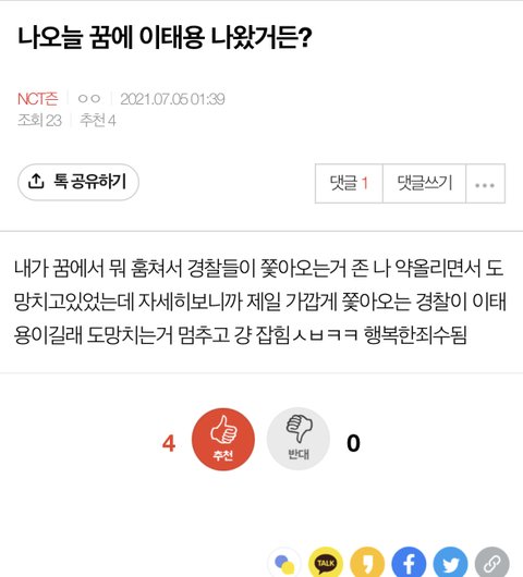 태용이 경찰 꿈 얘기