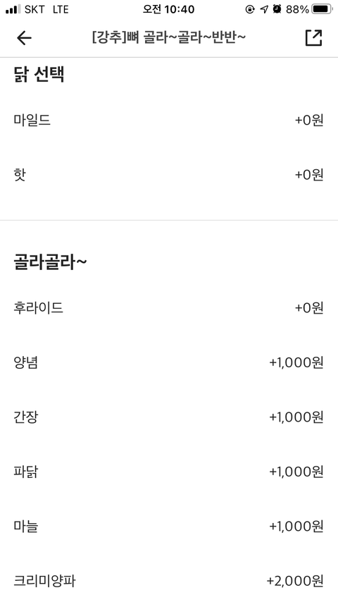 맵슐랭누르고 치킨시켯는데
