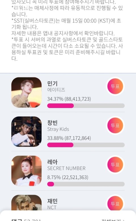 눈떠보니까 투표 2천만대에서 8천만대 돼버렸네 와우.. 한번에 우다다 하려고 토큰 모아두고있었나봐 완전 멋있다ㅠㅠ 나도 돈 좀 쓰면서 더 열심히 할게 티니들♥