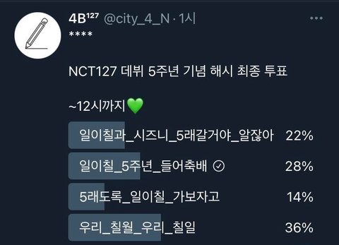 일리칠 5주년 해시 투표 뭐함