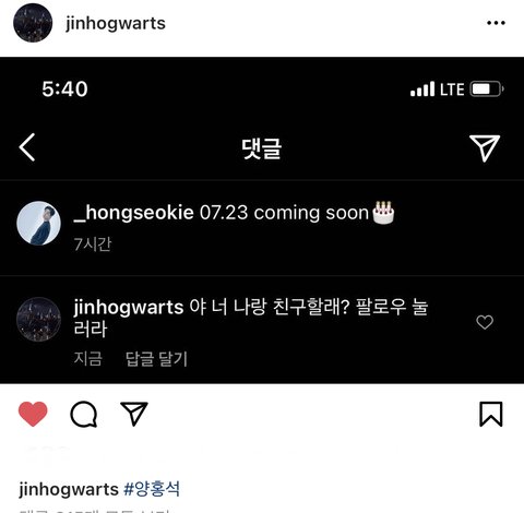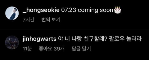 먼저 만든 홍석이 게시글에 야 너 나랑 친구할래? 팔로 걸어라 시전하심
