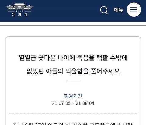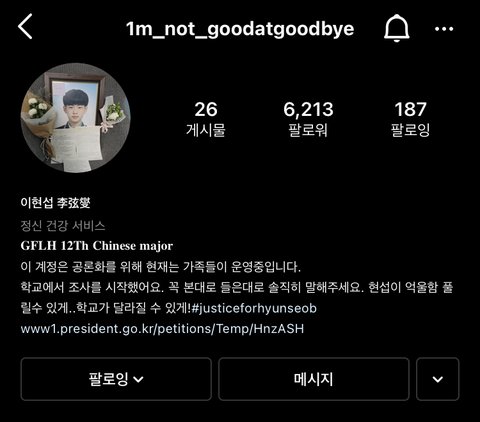 밑에 현재 유가족분들이 운영하고 계시는 인스타의 링크와 채널A에서 올린 기사의 링크, 국민청원 링크를 걸어놀겠습니다. 많이 관심 가져주시고 이 사건이 묻히지 않고 공론화가 될 수 있게 여러분 도와주세요. 이게 현재의 유족분들의 가장 큰 바램일겁니다. 더 자세한 내용은 제가 남긴 주소에 들어가셔서 확인해주세요. 읽어주셔서 감사합니다.