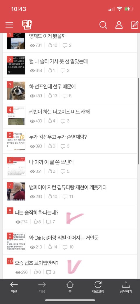 체크 친 거 절대 들어가지말고 추천/반대도 누르지마. 그리고 저거 제외한 나머지 글들 추천 눌러주고 댓글 왕창 달아줘! 뱀파이어 자컨 겹뮤다글 들어가서 짤털도 해줘 ❤️