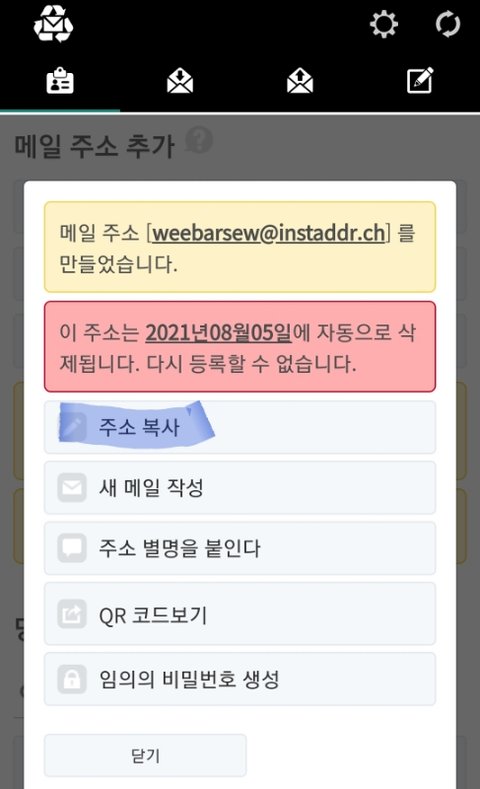 계정만들때마다 이메일 만드는 거 힘든데 쉽게 만들어주는 앱이야!! 참고해 티니들♡