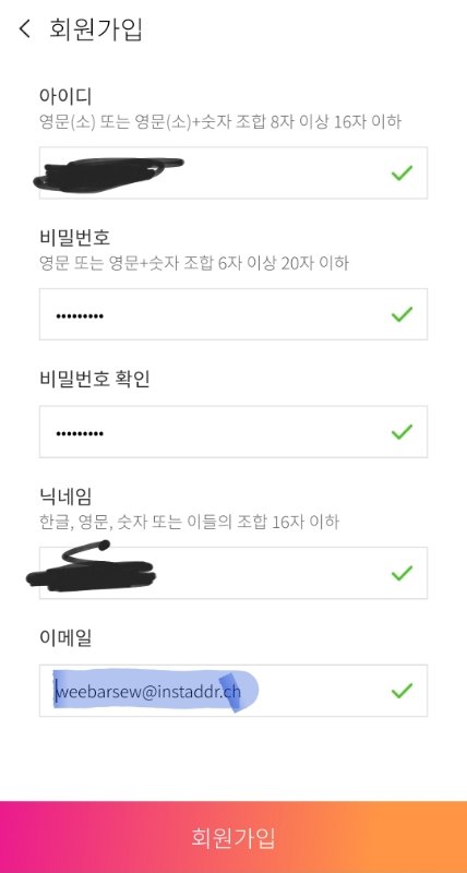 아이디는 새로 만들어야하고 비번은 똑같은거 써도 돼 만들어진 메일 복사해서 붙여넣기!!