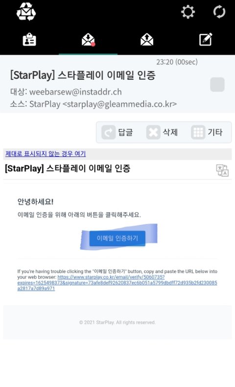 인증메일 위에 알림창 뜨니까 그거 누르면 돼