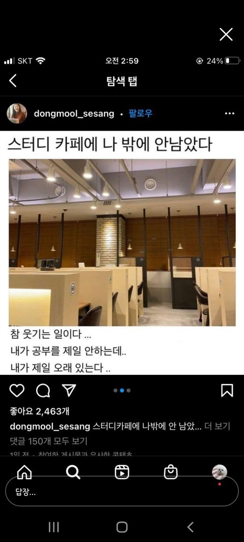 참 웃기는 일이다 내가 공부 제일 안하는데 내가 제일 오래 있는다