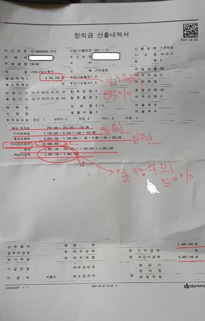 그런 이유로 보험 회사에 통원이든 입원이든 치료를 받은 날짜를 계산한 85% 금액의 50%를 지불 받는 것입니다.