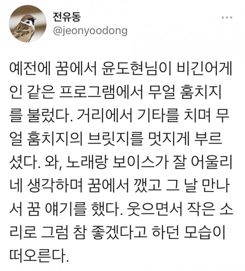 친구 : 꿈을 꿨는데 윤도현이 니 노래 부르더라!