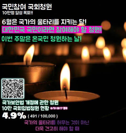 국회청원 사이트에 국가보안법을 폐지하자는 청원 역시나 올라온지 사흘만에 10만 달성 후 넘어간 실정입니다.