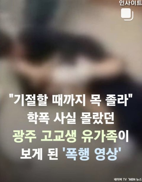 광주광역시 ㅅㅊ동 ㅈㄱ고에서 한 학생이 학교폭력으로 자살했습니다. 아침에 학교를 간다고 하고 산에서 자살을 했습니다. 학교와 방관자들은 나몰라라하고 있습니다. 가해자는 피해자의 목을 조르고 기절했음에도 폭력을 가하는 등 끔찍한 행동 등을 가했습니다. 심지어 피해자가 자살한 후에 가해자 중 한 명은 운구를 하려고 하기까지 했습니다. 저는 이 가해자와 피해자와 같은 중학교를 나왔고 얼굴도 알고 이름도 압니다. 그래서 너무 끔찍하고 너무 가슴이 아픕니다. 관심 가져주세요. 학교폭력은 근절돼야 합니다… 귀찮으시더라도 꼭 부탁드리겠습니다. 가까이 생긴 일이라고 생각하고 꼭 관심가져주세요 부탁드립니다