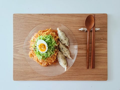 매콤한 쫄면에 아작아작 시원한 콩나물과 오이 듬뿍