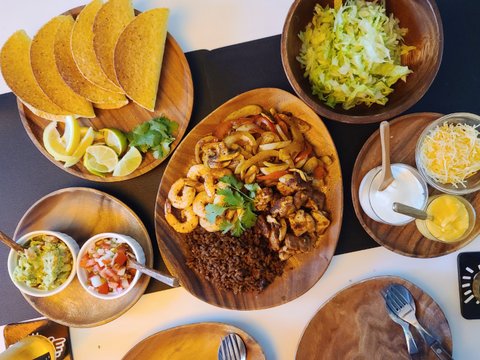 과카몰리와 토마토살사, 양상추, 고수, 사워크림, 치즈소스 등등