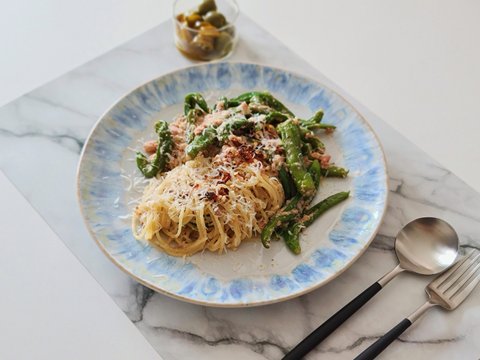 여름 제철인 꽈리고추에 명란과 마늘 듬뿍 넣어 감칠맛 가득한 간단한 파스타