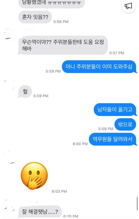 여성분은 의식은 차리셨는데 손이 안움직인다고 하셔서 역무원분들(남자분들)이 만져도 괜찮냐고 하고 손에 감각돌아올때까지 계속 주물러 주셨어요.