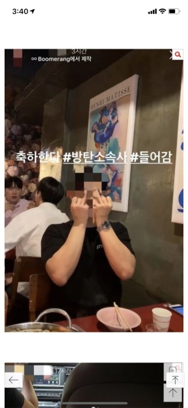2021년 6월 23일 방탄소년단 공식 인스타계정 스토리에 실수로 개인이 호텔에 있는 사진 올린 담당자