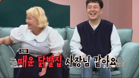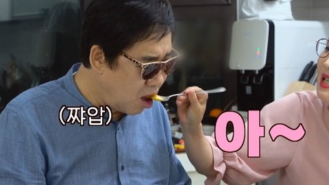 숟가락도 잘 뜨지 못하자 팽현숙이 옆에서 먹여줌