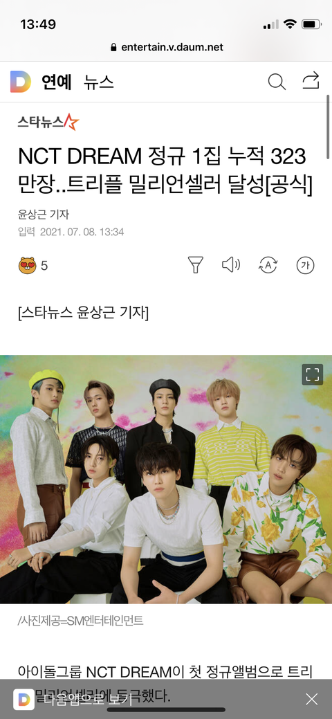 [공식]NCT DREAM 정규 1집 누적 323만장..트리플 밀리언셀러 달성