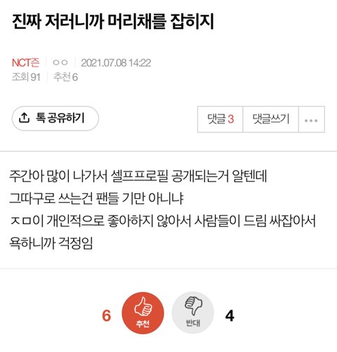 한 명이 계속 태클 걸면서 까글 쓰는데