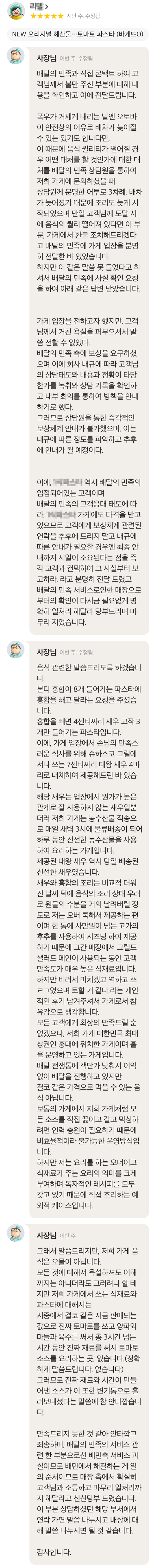 배달 앱에서 파스타 시키려고 리뷰 둘러보다가 스크롤이 엄청 길어서 뭔가 했더니 사장님이 웬 진상 고객한테 팩트로 참교육 시전하는 글