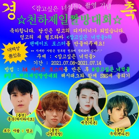 출연진은 틴탑 니엘 하이라이트 손동운 펜타곤 우석 빅톤 세준이 출연 확정이고 시험보는 족족 떨어져 노량진 고인물 경찰 준비생 F4래!!ㅋㅋㅋ