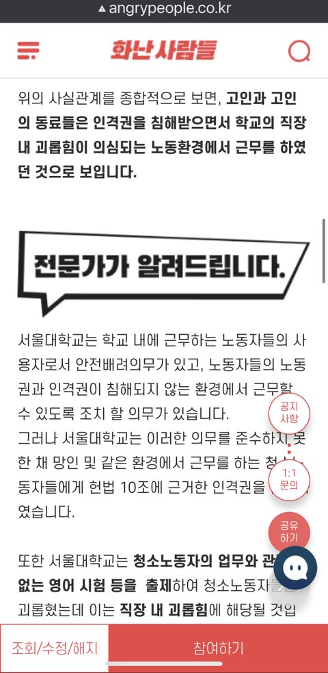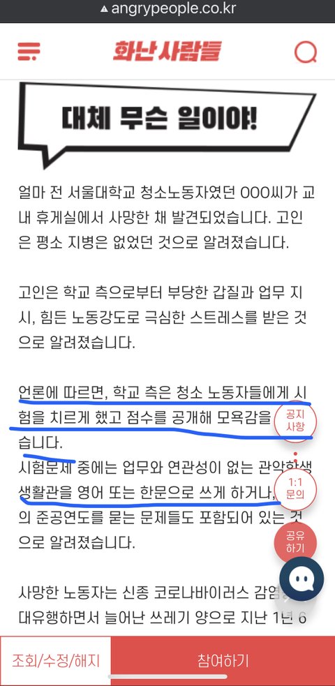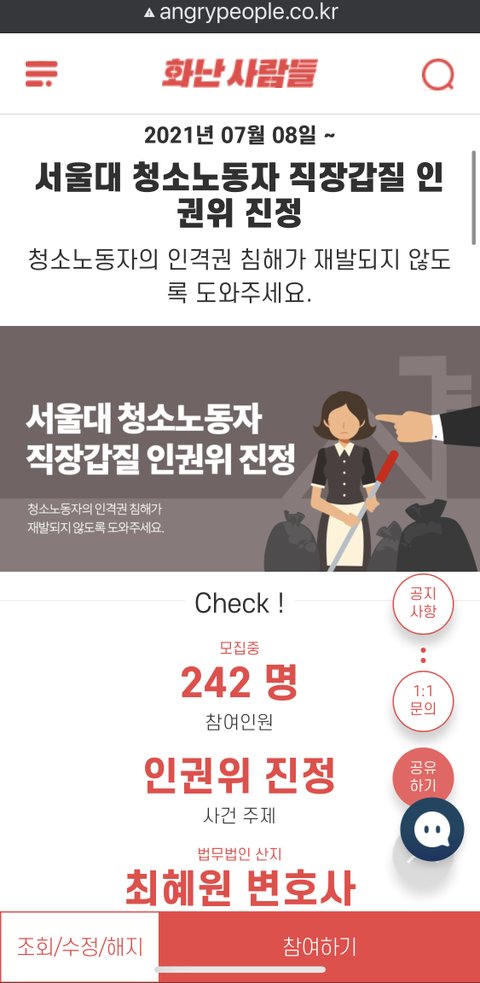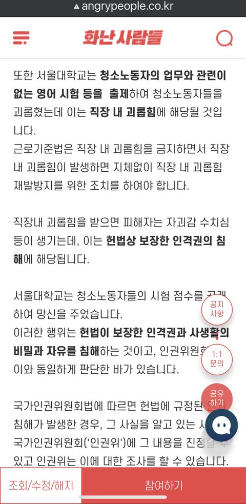 1. 서울대 청소노동자 직장 갑질 진정서넣으면 인권위가 조사 가능