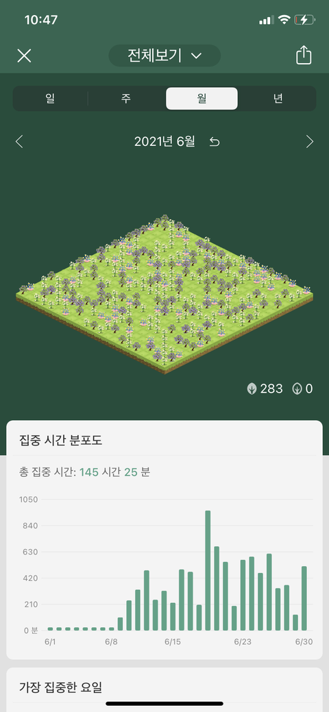이거는 내가 6월 8일부터 6월 30일 까지 공부한 양이야 이때까지는 학원 다녔었는데 학원 3시간은 측정 안했어