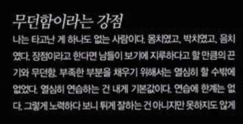 "열심히 연습하는 건 내게 기본값이다. 연습에 한계는 없다."
