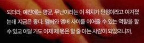 이제 본인의 단점이라고 생각했던 무난함으로 멤버와 멤버 사이를 이어주는 역할을 할 수 있고