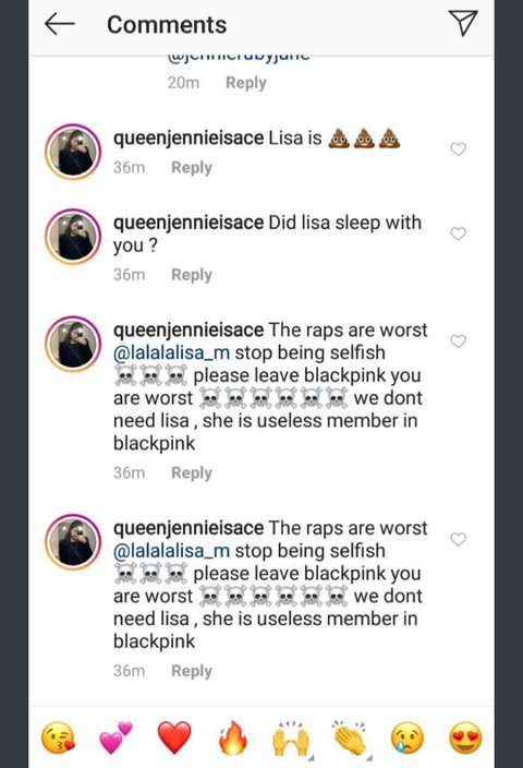 하지만 현실은 노래 가사보다 훨씬 더 다르다. 특히 소셜 미디어의 게시물마다 그것들이 가득할 때는 영향을 받지 않기란 어렵다. 행동할 때마다 항상 그렇게 좋은 말이 아니다. 리사, 55세 이상이야소셜 미디어 플랫폼 인스타그램의 1백만 명의 팔로워들은 그녀 자신의 팬덤, 다른 멤버들의 게임, 그리고 다른 팬덤으로부터 많은 미움을 받는다. 이모티콘으로 가득 찬 댓글란에 스팸을 보내는 것에서부터 인종 차별주의, 외국인 혐오증, __ 부끄럼, 신체를 부끄럽게 하는 것, 그리고 그녀에 대한 증오와 살해 협박에 대한 그녀의 가족을 포함해서.