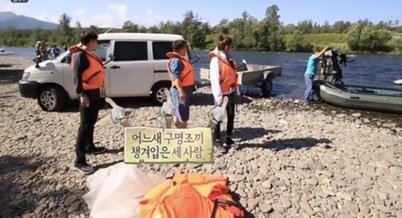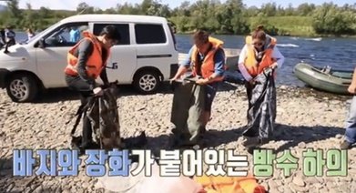 구명조끼 위에 방수하의를 입어야함