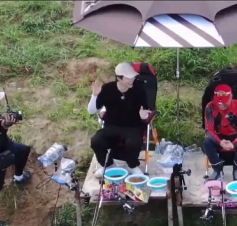 할아버지랑 낚시 온 손자 할아버지 옆에서 재롱부리는 중 할아버지는 손자 덕분에 웃음꽃 활짝