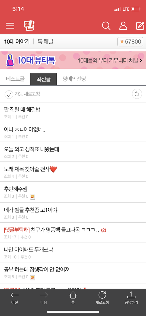 댓글 많은 톡