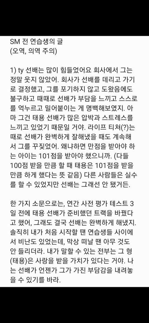 우리 태용이 진짜 고생 많이했구나 싶더라 연생했다가 나간 사람이 올렸대 짤은 짹에서 주웠던것 같아
