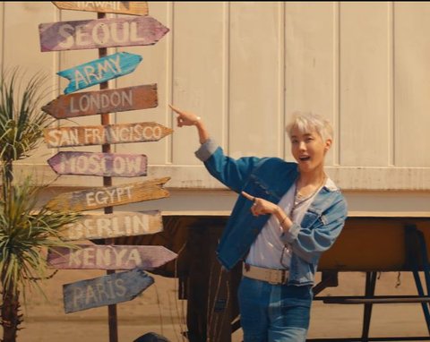 제이홉이 옆에 서 있음으로 전세계에 희망을 전한다(?) 이런의미같음. 즉 여러곳으로 희망을? 뭐 이런거랄까