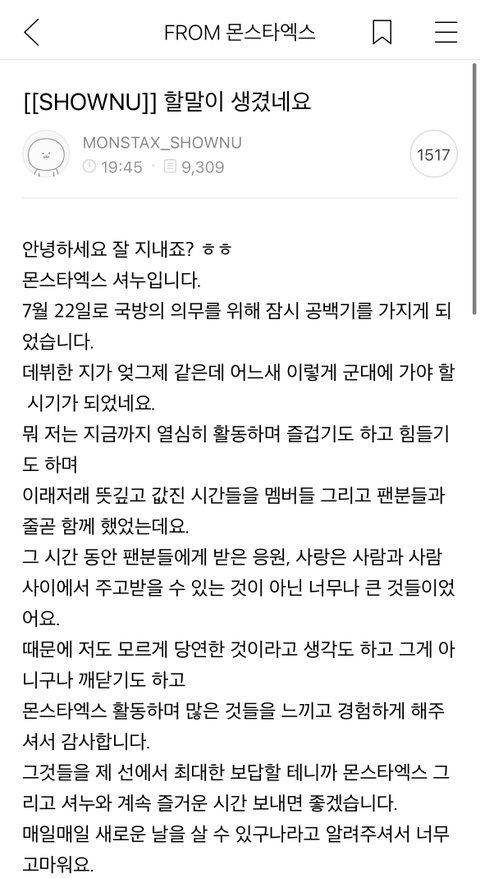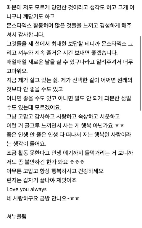 이 부분 뭔가 찡하다 몬엑팬이라서가 아니라 그냥 아이돌 파는 팬의 입장에서 봐도