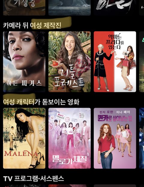 우리나라 영상사이트들에도 의무적으로 여성주인공 여성제작진 카테고리 넣게했으면 좋겠음 ㄹㅇ자랑스럽고 기분좋아