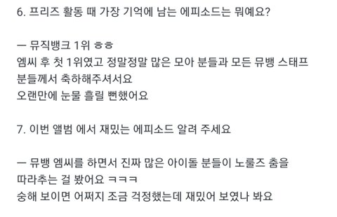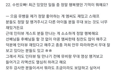이번에 수빈이가 위버스에서 문답시간 소통한거임..