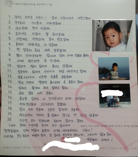 플러스로 어렸을적 수빈이ㅋㅋ 수빈이 어머니가 적어놓으신거