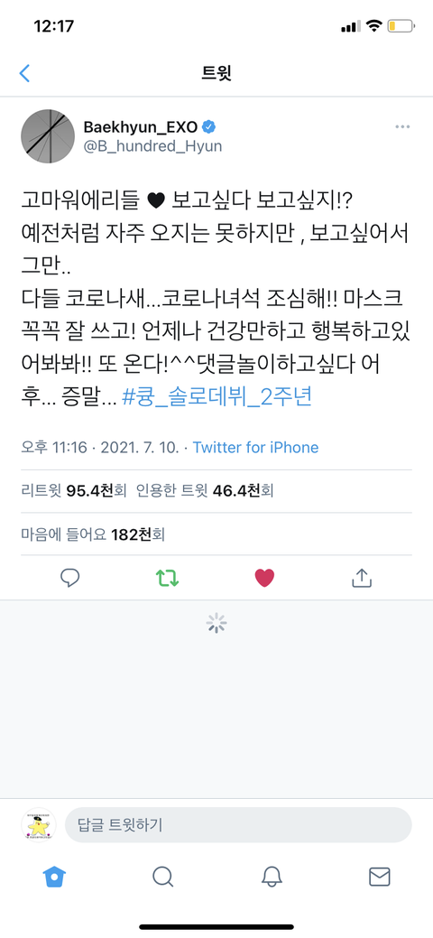 백현 계정 가서 봐봐 난 여태껏 텍데 저장해놓는 스윗뽀이라 생각했는데 ❤️이거로 쓴거였네 왜 난 검정하트로 보이냐