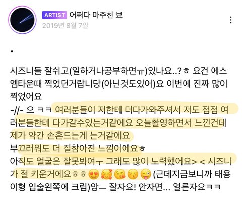 저 괄호안에 써진 내용이 모든 팬들 생각해주는 마음 같아서 너무 예쁨