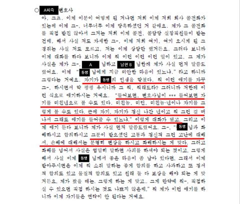 <답장을 하지 않자, 이후 A씨부부가 선임한 변호사에게 온 전화 내용 녹취록>