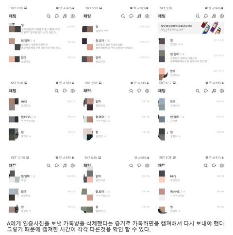 <A씨와의 카카오톡 대화내용 삭제하고 빈 대화창 캡쳐해서 보내게 한 인증사진>