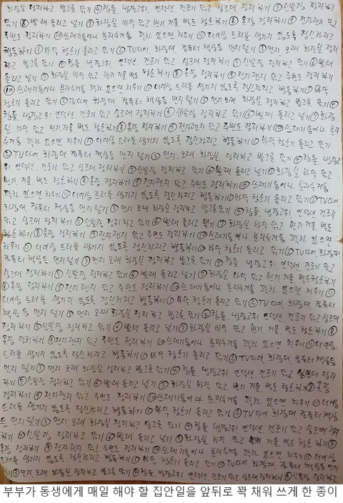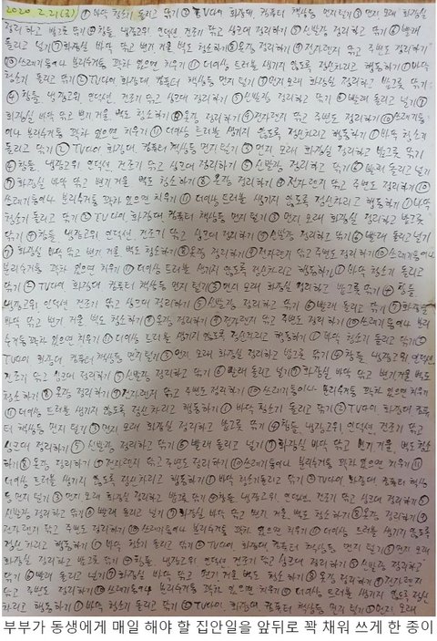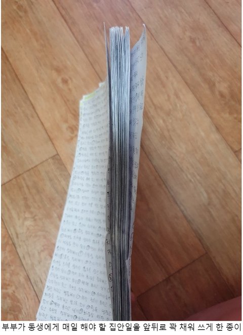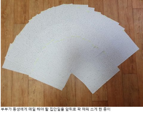 ① 집안일 등을 시키며 제대로 하지 않았다는 이유로 매일 A4용지 앞뒤로 쓰게 한 깜지