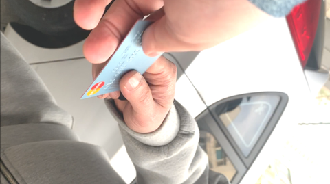 ② B씨가 사용하던 동생의 신용카드를 받는 장면을 찍은 동영상